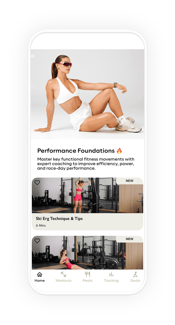 Perfect key functional fitness movements with Coach Annabelle. Access 6 On-Demand videos in the Move With Us app that break down each exercise to improve efficiency, power, and race-day performance.